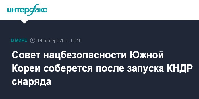 Москва. 19 октября. INTERFAX.RU - Совет нацбезопасности Южной Кореи соберется на экстренное заседание после сообщений о том, что Пхеньян произвел запуск неопознанного снаряда в сторону Японского моря, сообщает "Ренхап".