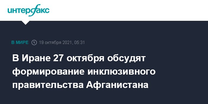 В Иране 27 октября обсудят формирование инклюзивного правительства Афганистана