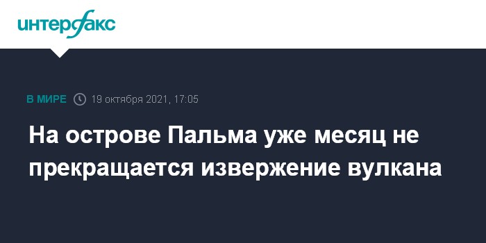 Москва. 19 октября. INTERFAX.RU - На испанском острове Пальма, входящим в состав Канарских островов, уже месяц продолжается извержение вулкана, сопровождающееся землетрясениями, сообщает во вторник западная пресса.