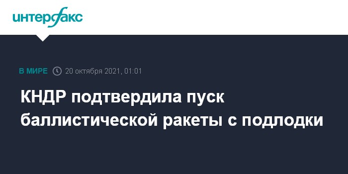 Москва. 20 октября. INTERFAX.RU - Северная Корея подтвердила, что днем ранее провела с подлодки пуск баллистической ракеты нового типа, сообщает агентство Yonhap со ссылкой на официальные СМИ КНДР.