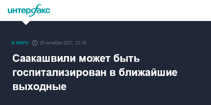 Москва. 20 октября. INTERFAX.RU - Бывший президент Грузии Михаил Саакашвили согласился на рекомендацию состоявшегося накануне врачебного консилиума о госпитализации.