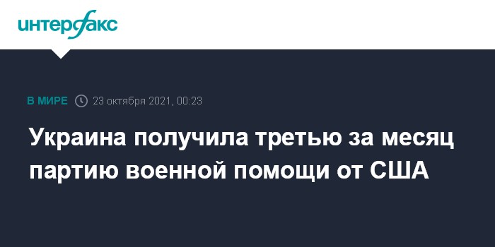 Москва. 23 октября. INTERFAX.RU - На Украину прибыла третья партия дополнительной международной военной помощи на $60 млн от правительства США для нужд украинских Вооруженных сил. Она включает в себя боеприпасы, противотанковое и высокоточное вооружение, медицинское имущество и другое, сообщило Минобороны Украины.