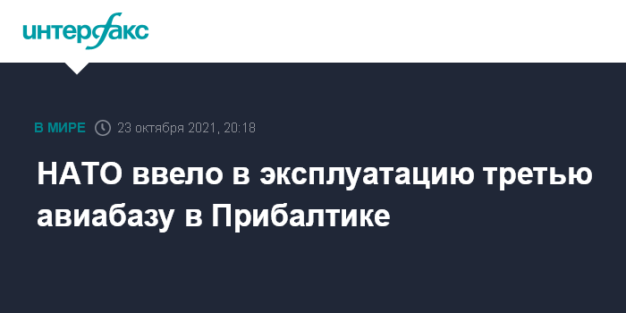 Москва. 23 октября. INTERFAX.RU - Военно-воздушные силы стран-членов НАТО после завершения модернизации и сертификации ввели в режим полномасштабного использования военный аэродром Лиелварде в Латвии, сообщило воздушное командование альянса.