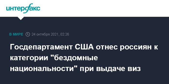 Госдепартамент США отнес россиян к категории "бездомные национальности" при выдаче виз
