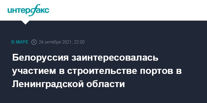 Москва. 24 октября. INTERFAX.RU - Белоруссия рассчитывает принять участие в строительстве объектов в портах Ленинградской области, заявил в эфире телеканала "Беларусь 1" министр архитектуры и строительства Руслан Пархамович в воскресенье.