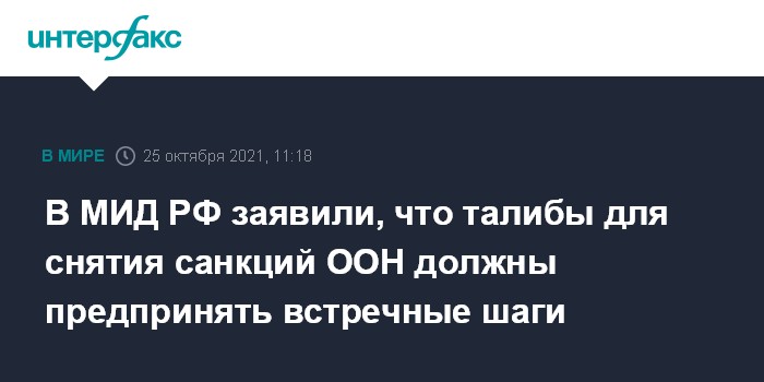 В МИД РФ заявили, что талибы для снятия санкций ООН должны предпринять встречные шаги