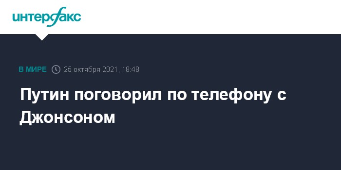 Москва. 25 октября. INTERFAX.RU - Состоялся телефонный разговор президента РФ Владимира Путина с премьер-министром Великобритании Борисом Джонсоном, сообщила пресс-служба Кремля.