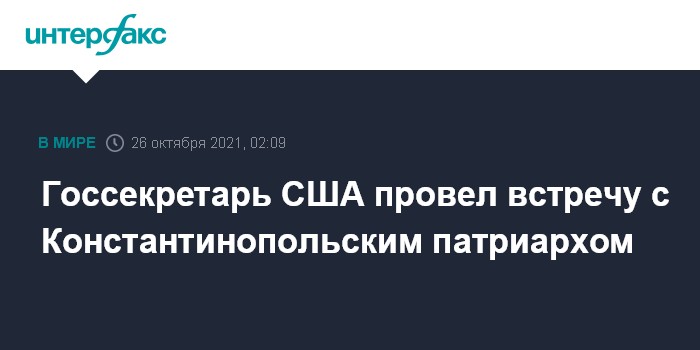 Москва. 26 октября. INTERFAX.RU - Государственный секретарь США Энтони Блинкен встретился с Константинопольским патриархом Варфоломеем, сообщает Госдепартамент.