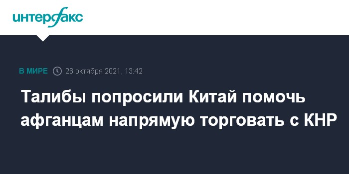 Талибы попросили Китай помочь афганцам напрямую торговать с КНР