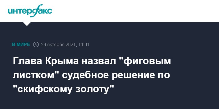 Москва. 26 октября. INTERFAX.RU - Решение апелляционного суда Амстердама о передаче Украине "скифского золота" - коллекции артефактов из четырех крымских музеев - является предвзятым и ожидаемым, заявил глава Крыма Сергей Аксенов.