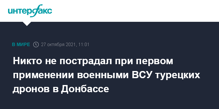 Москва. 27 октября. INTERFAX.RU - Пострадавших и разрушений гражданских объектов в поселке Гранитное в Донбассе после первого применения украинскими военными турецких ударных беспилотников Bayraktar нет, сообщил "Интерфаксу" источник в силовых структурах самопровозглашенной Донецкой народной республики.