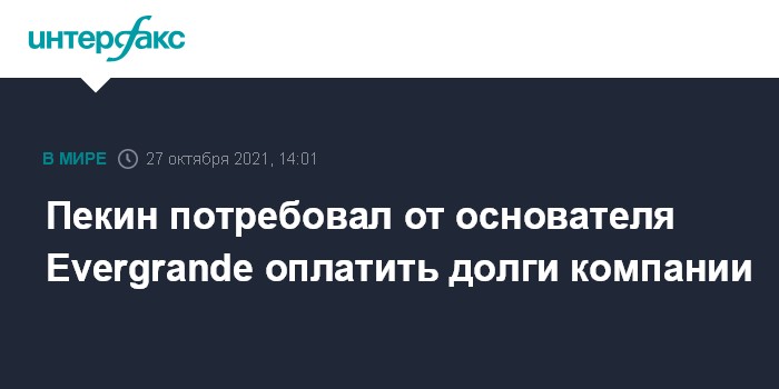Тот факт, что Пекин требует от основателя Evergrande использовать собственные ресурсы для решения проблем компании, говорит о нежелании китайских властей спасать погрязшего в долгах застройщика за счет государственных средств, несмотря на то, что кризис распространяется на других девелоперов.