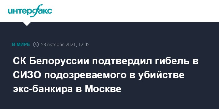СК Белоруссии подтвердил гибель в СИЗО подозреваемого в убийстве экс-банкира в Москве