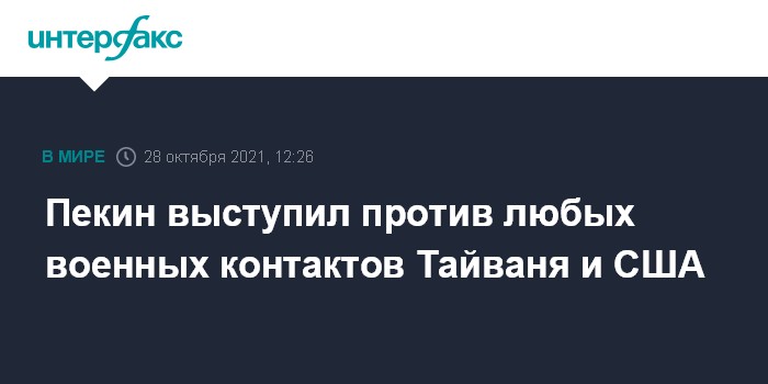 Москва. 28 октября. INTERFAX.RU - Власти КНР не приемлют каких-либо военных и официальных контактов Тайваня и США и предостерегают Вашингтон от вмешательства во внутренние дела Китая. Об этом заявил в четверг на брифинге представитель китайского МИД Ван Вэньбинь.