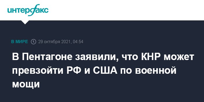 В Пентагоне заявили, что КНР может превзойти РФ и США по военной мощи