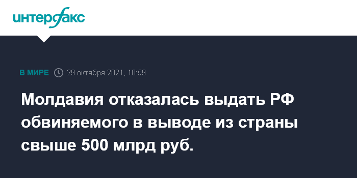 Молдавия отказалась выдать РФ обвиняемого в выводе из страны свыше 500 млрд руб.