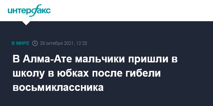 Самоубийство школьника агентству "КазТАГ" подтвердили в полиции Алма-Аты и в школе. Полицейские начали досудебное расследование случившегося по статье о доведении до самоубийства. Источник агентства утверждает, что восьмиклассник надел юбку, чтобы пошутить.