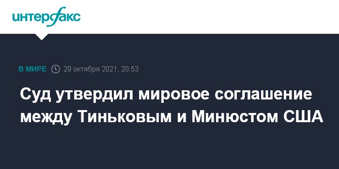 Суд утвердил мировое соглашение между Тиньковым и Минюстом США
