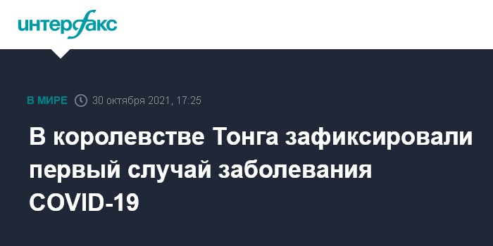 Москва. 30 октября. INTERFAX.RU - В королевстве Тонга - тихоокеанском островном государстве в Полинезии зафиксирован первый с начала пандемии случай заболевания коронавирусом, сообщила в субботу британская вещательная корпорация BBC.