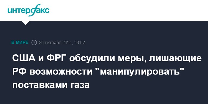 Москва. 30 октября. INTERFAX.RU - Гарантии того, что РФ не сможет использовать экспорт газа в "пагубных" целях, стали одной из тем переговоров в субботу президента США Джо Байдена с канцлером ФРГ Ангелой Меркель и вице-канцлером Олафом Шольцем, говорится в заявлении Белого дома.