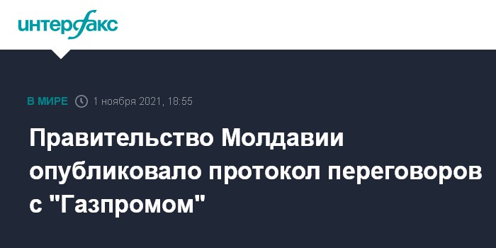 Москва. 1 ноября. INTERFAX.RU - Правительство Молдавии обнародовало в понедельник протокол проведенных на прошлой неделе переговоров с ПАО "Газпром", документ вывешен на сайте министерства инфраструктуры и регионального развития.