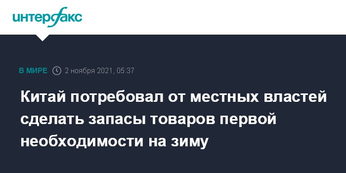 Китай потребовал от местных властей сделать запасы товаров первой необходимости на зиму