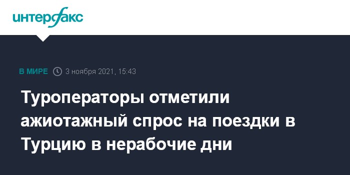 Москва. 3 ноября. INTERFAX.RU - Спрос на туры в Турцию после объявления нерабочих дней с 28 октября по 7 ноября вырос в несколько раз, также активизировались бронирования направления на новогодние праздники, сообщили "Интерфаксу" туроператоры.