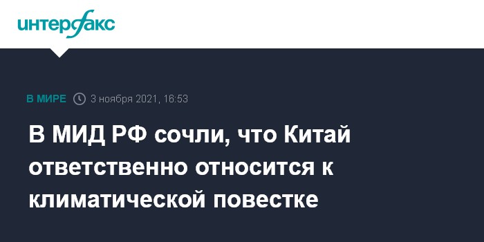 Москва. 3 ноября. INTERFAX.RU - В Москве расценивают позицию Китая по климату как конструктивную, заявила официальный представитель МИД РФ Мария Захарова.