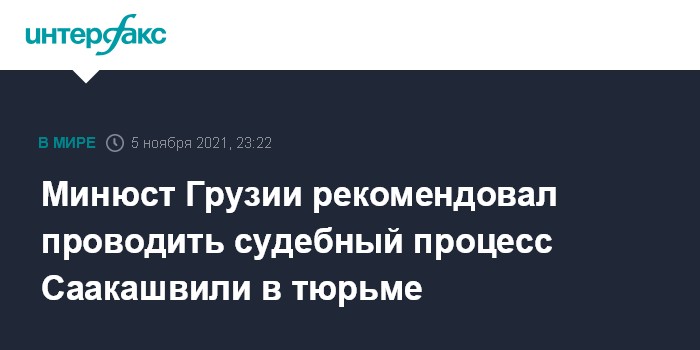 Москва. 5 ноября. INTERFAX.RU - Министр юстиции Грузии Рати Брегадзе в эфире грузинской телекомпании "Рустави-2" заявил, что его ведомство из соображений безопасности не рекомендует проводить судебный процесс в отношении экс-президента Михаила Саакашвили в здании суда и предлагает делать это в тюремном учреждении, где он находится.