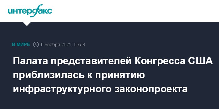Москва. 6 ноября. INTERFAX.RU - Американские конгрессмены в Палате представителей Конгресса США могут уже в пятницу проголосовать за инфраструктурный законопроект, сообщает агентство Associated Press (AP).