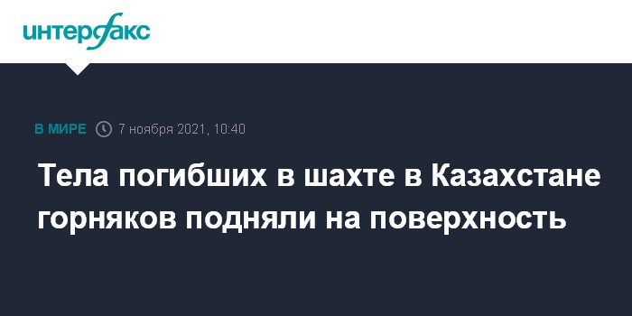 Москва. 7 ноября. INTERFAX.RU - Тела всех шестерых горняков, погибших при выбросе метана в шахте Абайская Карагандинской области, подняты на поверхность, сообщила в воскресенье пресс-служба МЧС Казахстана.