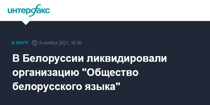 Москва. 8 ноября. INTERFAX.RU - Белорусские власти ликвидировали общественное объединение "Общество белорусского языка" ("Таварыства беларускай мовы"), сообщила его председатель Елена Анисим на своей странице в соцсетях в понедельник.
