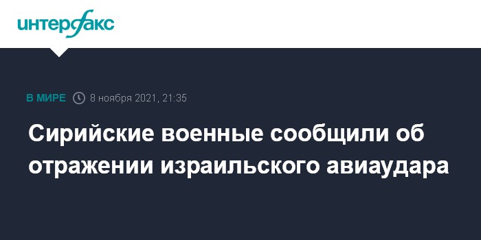 Москва. 8 ноября. INTERFAX.RU - Сирийские системы ПВО отразили израильский авиаудар, сообщает в понедельник агентство САНА.