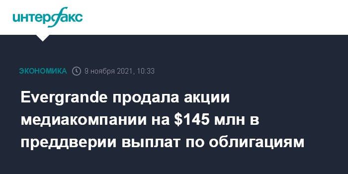 Evergrande продала акции медиакомпании на $145 млн в преддверии выплат по облигациям