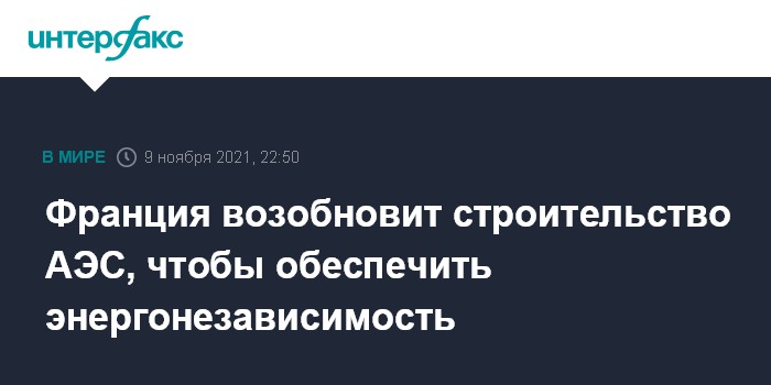 Москва. 9 ноября. INTERFAX.RU - Президент Франции Эммануэль Макрон объявил во вторник, что его страна впервые за много лет будет строить атомные электростанции (АЭС), чтобы снизить зависимость от импорта энергоносителей.