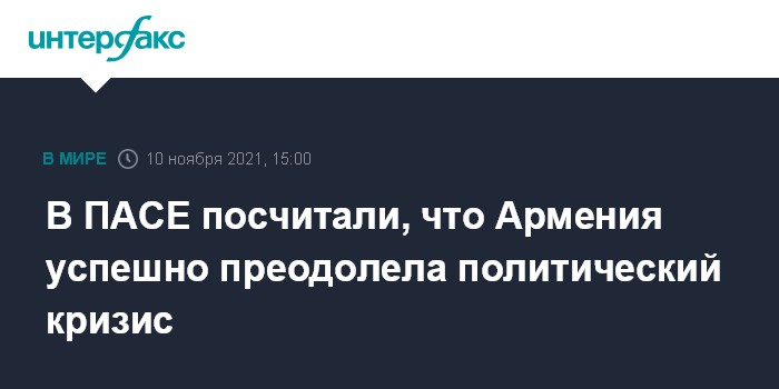 Москва. 10 ноября. INTERFAX.RU - Армения успешно вышла из политического кризиса, вызванного поражением в карабахской войне осенью 2020 года, считают докладчики ПАСЕ по мониторингу обязательств республики.
