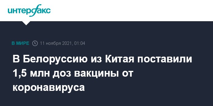 "В общей сложности в Беларусь прибыли 1,5 млн. доз вакцины SARS-CoV-2 Vaccine (Vero Cell), Inactivated, компании Sinopharm - 1 млн. доз вакцины, которую закупил у Китая Минздрав Беларуси, также китайская сторона передала Беларуси 500 тыс. доз вакцины и 500 тыс. шприцев в качестве иностранной безвозмездной помощи. В решении данного вопроса Минздраву Беларуси активно помогали представители министерств иностранных дел и посольства двух стран", - говорится в сообщении пресс-службе Минздрава.