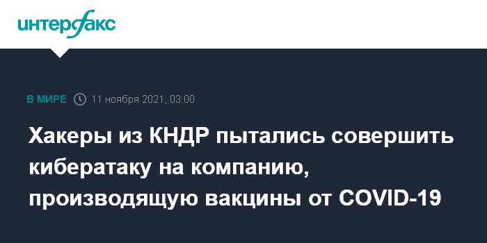 Ранее в этом году южнокорейское агентство "Ренхап" со ссылкой на Национальное агентство разведки (NIS) Южной Кореи сообщало о том, что хакеры из КНДР пытались взломать сервера американской фармацевтической компании Pfizer, чтобы получить информацию о вакцине против коронавируса COVID-19.
