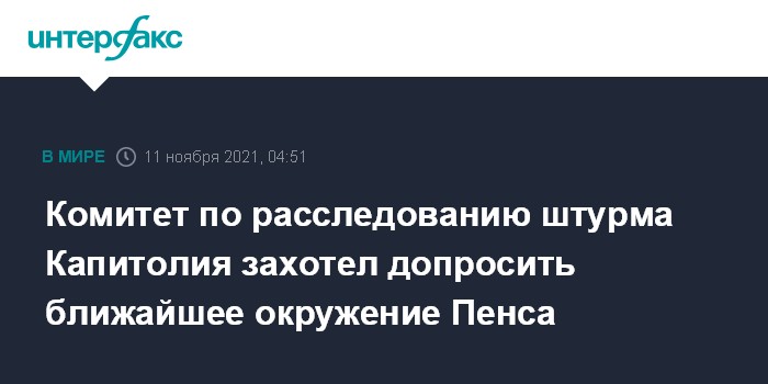 Москва. 11 ноября. INTERFAX.RU - Комитет палаты представителей, расследующий штурм Капитолия 6 января, заинтересован в сборе информации от ближайшего окружения бывшего вице-президента США Майка Пенса, сообщает CNN со ссылкой на осведомленные источники.