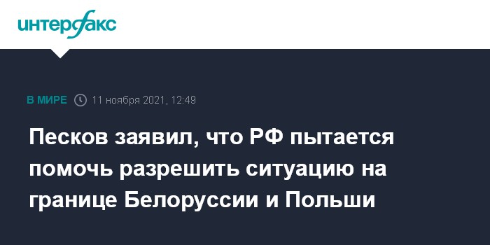 Песков заявил, что РФ пытается помочь разрешить ситуацию на границе Белоруссии и Польши