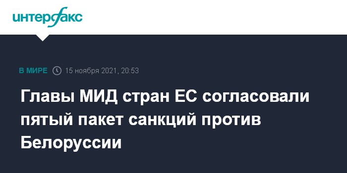 Ранее сообщалось, что на встрече в Брюсселе главы МИД стран ЕС модифицировали санкционный режим против Белоруссии, сделав возможным введение ограничений в ответ на миграционный кризис, развернувшийся на границе союза и Белоруссии из-за прибытия мигрантов из ближневосточных стран.