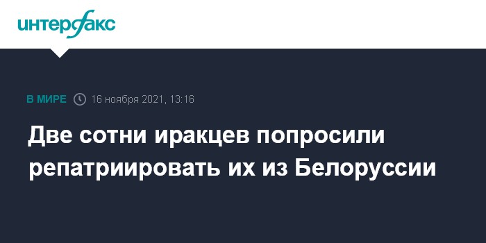 Москва. 16 ноября. INTERFAX.RU - Около 200 иракцев, прибывших в Белоруссию для пересечения границы с ЕС, обратились в посольство Ирака в РФ и выразили желание вернуться на родину, сообщили "Интерфаксу" в иракской дипмиссии во вторник.