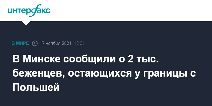 Москва. 17 ноября. INTERFAX.RU - Около 2 тысяч беженцев сейчас находятся вблизи границы с Польшей, сообщает Госпогранкомитет Белоруссии.