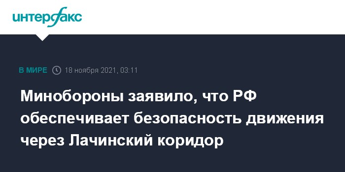Минобороны заявило, что РФ обеспечивает безопасность движения через Лачинский коридор