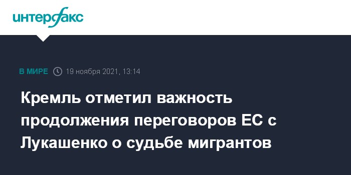 Кремль отметил важность продолжения переговоров ЕС с Лукашенко о судьбе мигрантов