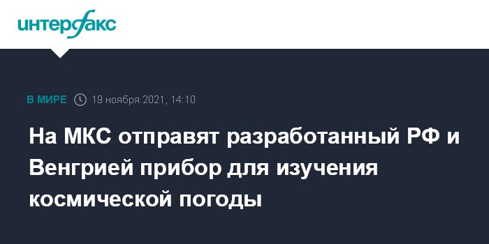 Москва. 19 ноября. INTERFAX.RU - Венгрия планирует отправить на МКС разработанное совместно с РФ устройство для исследования космической погоды в 2025 году, сообщил глава МИД Венгрии Петер Сиярто.