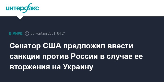 Москва. 20 ноября. INTERFAX.RU - Председатель сенатского Комитета по международным отношениям демократ Боб Менендес предложил внести поправку в проект оборонного бюджета США, предусматривающую широкие санкции против России на случай ее вторжения на Украину, сообщил портал Axios.