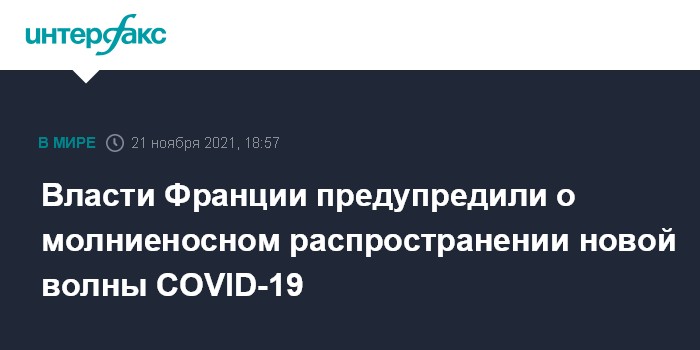 Москва. 21 ноября. INTERFAX.RU - Власти Франции видят признаки очень быстрого распространения очередной волны коронавируса COVID-19, заявил в воскресенье представитель правительства Габриель Атталь.