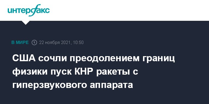 Ранее зампредседателя Объединенного комитета начальников штабов вооруженных сил США генерал Джон Хайтен заявил телеканалу CBS, что в августе Китай запустил в атмосферу ракету большой дальности, которая облетела весь мир, а "затем сбросила гиперзвуковой планирующий блок, который поразил цель на территории самого Китая". Предполагается, что этим летом Китай дважды успешно испытывал гиперзвуковое оружие.