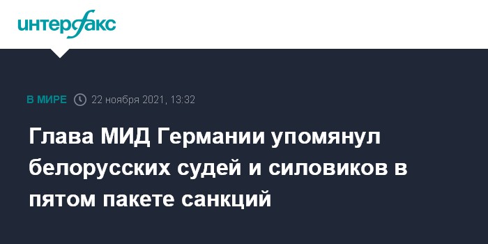 Москва. 22 ноября. INTERFAX.RU - Еврокомиссия работает над пятым пакетом санкций против белорусских властей, сообщил глава МИД Германии Хайко Маас.